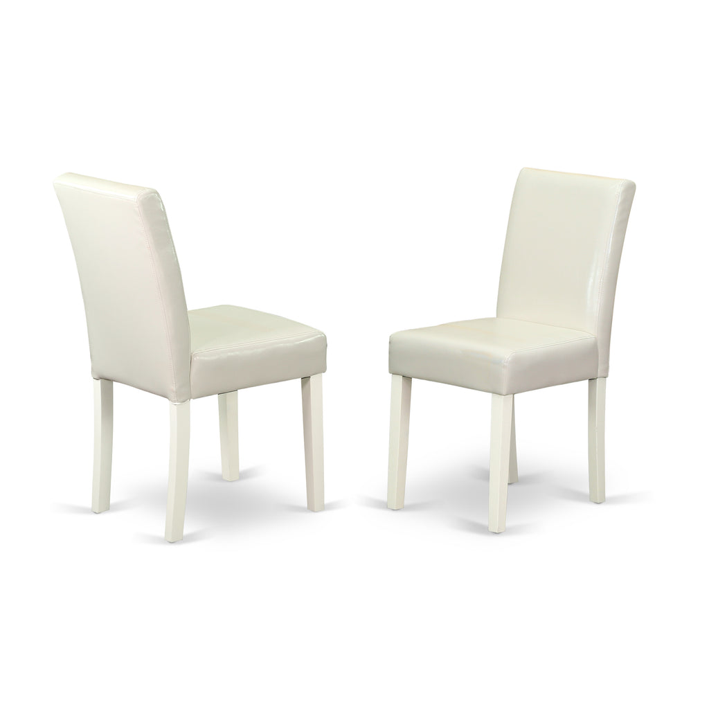 Bring a classy magnificence to your kitchen with our 5 piece dining table set. You get 4 fabulous dining room chairs and a lovely dining table in this awesome 5 piece modern dining table set Exclusive design of these chairs for dining room and dining room table will boost the attractiveness of any dining room. Comfy White PU Leather back and seat of these kitchen chairs will give excellent support to your back and a wonderful relaxing experience. The structure of these unique dining chairs and two 9-inch drop leaves dining room table is made of Prime Quality Asian Hardwood (Rubber Wood) which delivers amazing sturdiness and stability to these dining chairs and dining room table. Soft and relaxing foam padded seat and back of these wonderful parson chairs are wrapped in Fine Quality White PU Leather which delivers a spectacular appearance and comfortable sitting experience. Leading-edge durable solid wood structure, luxurious PU Leather seat, and back, reliable dining room table offer trendy appearance to your dining area, perfect stability to these impressive dining room chairs and wood table, and luxurious support to your back. Due to the surprisingly perfect dimensions, this dining table set is very easy to carry, clean, assemble and alter its places, Timeless designs of this exclusive dining room table suits well with any interior decoration and a gentle cushion upholstered seat and back in smooth PU Leather of these dining chairs will keep users comfortable.