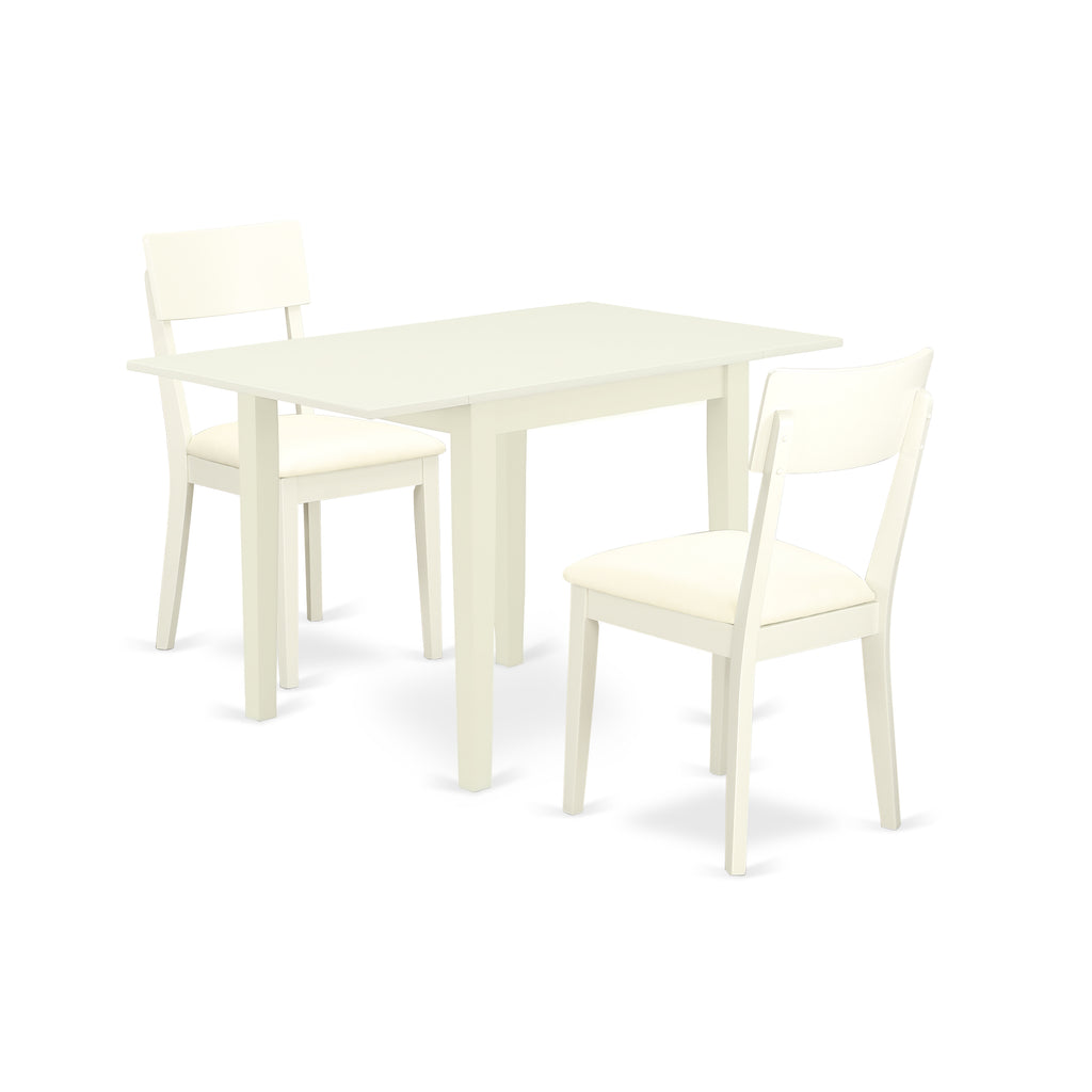 Give an elegant elegance to your kitchen with our 3 pieces dining room table set. You get two great dining chairs and a gorgeous dining table in this remarkable 3 piece dining set Cutting edge design of these dining room chairs and breakfast table will strengthen the charm of any dining room. Comfy Linen White Faux Leather seat and Linen White finish hardwood ladder back of these kitchen chairs will provide great support to your back and amazing sitting experience. The structure of these modern kitchen dining chairs and two 9-inch drop leaves wooden table is made of Superior Quality Asian Solid wood (Rubber Wood) which delivers excellent robustness and stability to these kitchen dining chairs and dining table. Soft and comfortable foam padded seat and wooden ladder back of these fabulous dining room chairs provide a spectacular appearance and comfortable sitting experience. Leading-edge robust solid wood frame, comfortable Faux Leather seat, reliable wood table deliver modern gaze to your dining room, fantastic stableness to these incredible kitchen dining chairs and kitchen table, and comfortable support to your back. Thanks to the incredibly ideal size, this modern dining table set is easy to carry, wash, assemble and alter its places, Timeless designs of this creative breakfast table meets nicely with any decor and a soft cushion padded seat in smooth Faux Leather and ladder back of these wooden dining chairs will keep users comfortable.