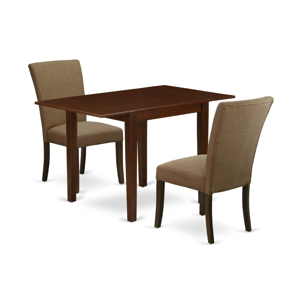 Deliver a stylish style to your dining area with our 3 piece dining set. You'll get 2 wonderful chairs for the dining room and a gorgeous wood table in this awesome 3-piece dining table set Exclusive style of these dining chairs and breakfast table will increase the elegance of any kitchen. Relaxing Light Sable Linen Fabric full back and seat of these parson chairs will give wonderful support to your back and great sitting experience. The body of these cutting edge chairs for dining room and two 9-inch drop leaves dinner table is built from Good Quality Asian Wood (Rubber Wood) which gives amazing robustness and stability to these dining chairs and dining table. Soft and luxurious foam padded seat and high back of these fabulous parson dining chairs are wrapped in Good Quality Light Sable Linen Fabric which offers an impressive style and comfy sitting experience. Exclusive durable wooden structure, comfortable Linen Fabric seat and back, dependable wooden table give Contemporary look to your dining area, outstanding stableness to these impressive kitchen chairs and wood table, and relaxing support to your back. Due to the surprisingly ideal measurements, this dining table set is easy to carry, clean, assemble and alter its places, Ageless designs of this special dining room table meets nicely with any decoration and a gentle cushion upholstered seat and full back in smooth Linen Fabric of these parson dining chairs will keep users comfortable.