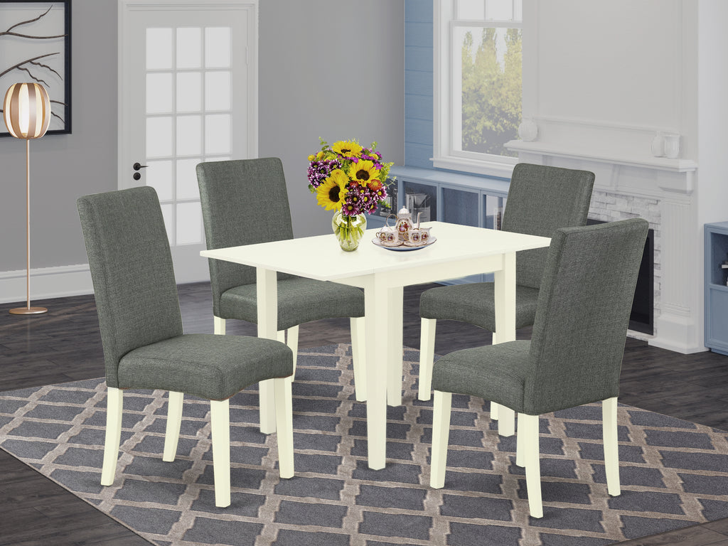Bring a beautiful beauty to your dining room with our 5-piece Dinette Set. You'll get four superb chairs for dining room and an amazing wood dining table in this outstanding 5 piece dining room table set Cutting edge design of these dining chairs and wooden table will improve the attractiveness of any dining area. Comfortable Gray Linen Fabric back and the seat of these dining room chairs will give wonderful support to your back and an amazing relaxing experience. The body of these Exclusive parson dining chairs and two 9-inch drop leaves dinner table is constructed from High-Quality Asian Solid wood (Rubber Wood) which delivers great robustness and stability to these chairs for the dining room and kitchen table. Soft and comfortable foam padded seat and back of these incredible parson chairs are wrapped in Top Quality Gray Linen Fabric, which gives a breathtaking style and comfortable sitting experience. Exclusive durable wooden structure, luxurious linen fabric seat, and back, dependable breakfast table deliver advanced glance to your dining room, perfect steadiness to these awesome chairs for dining room and wood dining table, and nice support to your back. Due to the incredibly ideal dimensions, this wooden dining table set is quite simple to carry, clean, assemble and alter its places, Amazing designs of this special kitchen table suits nicely with any room decoration and a gentle cushion upholstered seat and back in smooth Linen Fabric of these chairs for dining room will keep users relaxed.