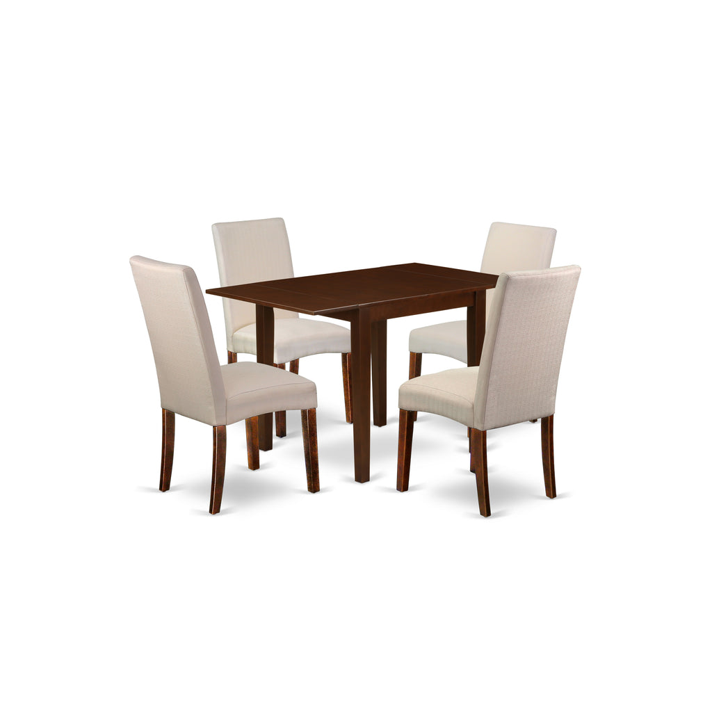 Provide a beautiful style to your kitchen with our 5 piece Dinette Set. You get 4 fabulous dining room chairs and an attractive dining room table in this amazing 5 piece Dinette set Cutting edge design of these dining room chairs and kitchen table will boost the charm of any dining area. Comfy Cream Linen Fabric back and the seat of these dining room chairs will give fantastic support to your back and a great relaxing experience. The frame of these unique kitchen chairs and two 9-inch drop leaves breakfast table is constructed from Prime Quality Asian Hardwood (Rubber Wood) which provides fantastic sturdiness and stability to these dining room chairs and modern dining table. Gentle and comfortable foam padded seat and back of these great kitchen chairs are wrapped in Top Quality Cream Linen Fabric, which delivers a wonderful glance and comfortable sitting experience. Revolutionary durable hardwood structure, relaxing linen fabric seat and back, dependable dinner table provides the trendy appearance to your kitchen, great stability to these fantastic dining room chairs and dining room table, and luxurious support to your back. Because of the incredibly perfect size, this dining room table set is very simple to carry, clean, assemble and change its places, Timeless designs of this distinctive dinner table fits well with any decor and a comfortable cushion upholstered seat and back in smooth Linen Fabric of these dining room chairs will keep users comfortable.