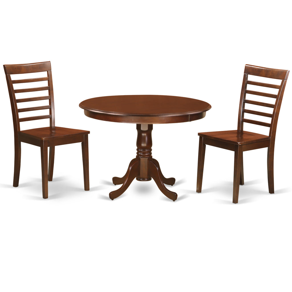 The Following Circular Small Table Set Will Definitely Bring In A Glamorous Touch For Virtually Any Kitchen With Its Dark Smooth Elements. Each Circular Dining Room Table Offers A 42'' Width, A 30'' Height, Along With A Little More Space For That Extra Evening Meal Guest. The Stylized Dining Room Chairs Possess A Horizontal Backboards, For That Natural Yet Still Beneficial Design. The Circular Dining Tables And Corresponding Mahogany Kitchen Chairs Give You Ample Amounts Of Comfort Along With Delivering That Pristine Finish. The Circular Small Kitchen Table Includes A Detailed Stand That Branches Off Directly Into Four Curved Legs For Cosmetic And Architectural Assistance. 3-Piece Hartland Set With One Round 42in Table And Two Dinette Chairs With Solid Wood Seat In An Attractive Mahogany Finish